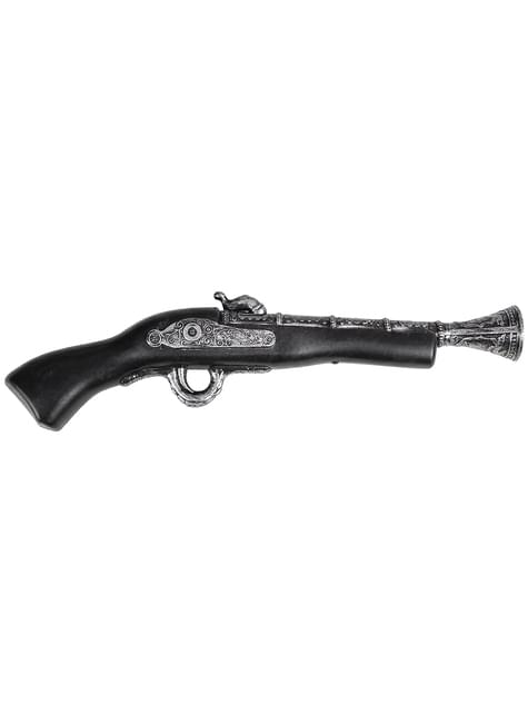 This pirate gun is just right for the pirate holster. However, the details are silvery, not gold like in the picture.